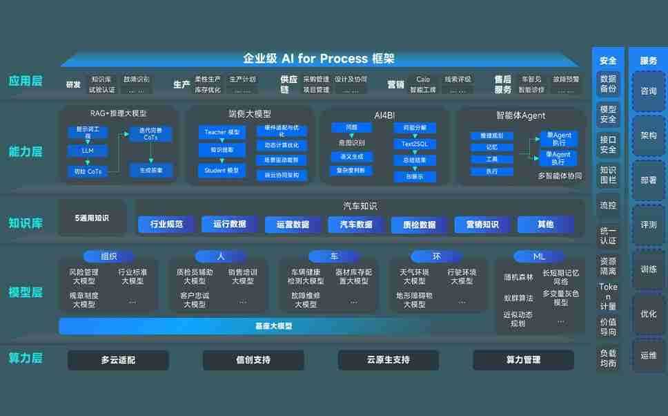 端到端的一站式AI工作空间深度融合了从企业战略规划到日常经营的全流程业务板块,,,,定向解决车企内部领域多、、部门多、、、链条长、、场景碎片化等难题,,,支持车企快速构建以AI为核心的生产力写作体系,,,,实现任务执行与AI能力的无缝集成与交互