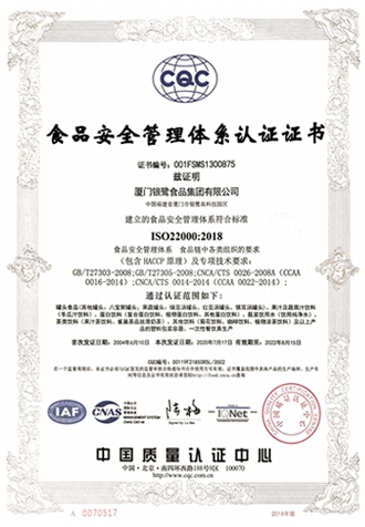 通过食品安全与质量管理体系认证
