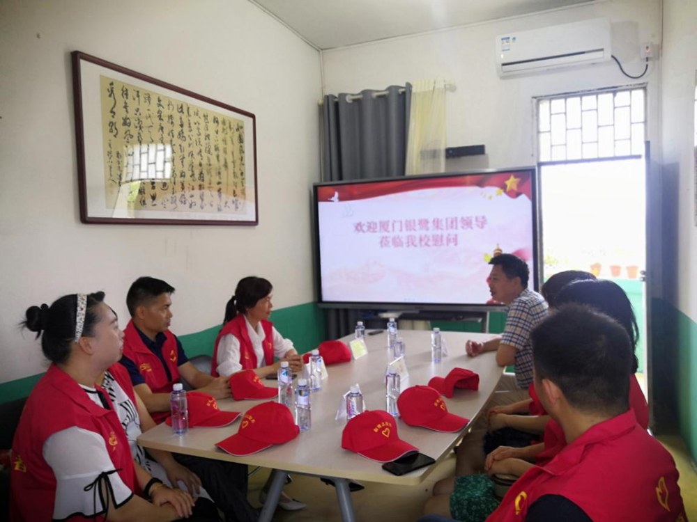 翔安区特教学校,,,李校长简要介绍了学校的教学基本情况和对未来工作的设想,,,,感谢尊龙时凯企业多年来一直对学校的关心和帮助。。。。他提到,,,,他正着手推动有关部门筹建“启航小镇”的建设,,,把它打造成特殊群体生活就业的乐土,,,爱心超市,,,爱心书屋、、爱心小吃……让这些人回归社会后,,,,能够找到自信,,,独立而有尊严的生活。。。。